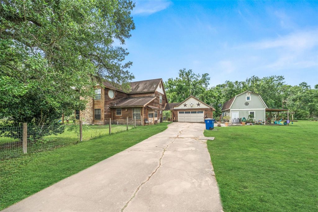 This charming stone and cedar country estate offers the perfect blend of privacy, character, and opportunity. Situated on 3 stunning acres, the property is surrounded by majestic oak and pecan trees. With no back yard neighbors and a scenic backdrop of a sprawling 330-acre ranch, you will enjoy abundant wildlife and serene views right from your back door. The home features a warm and inviting floor plan highlighted by a spacious primary suite on the first floor. Upstairs, a lovely balcony overlooks the property, offering a tranquil retreat and bonus space. Adding more value, the barn has been converted into a move in ready one bedroom, 1.5 bath home (718 sq ft). Perfect for immediate living, guests, or rental income. It provides a comfortable place to stay while you bring your vision to life in the main house. With timeless charm, a functional layout, and endless possibilities, this unique property is a rare opportunity to create your dream country lifestyle. HIGH AND DRY! NO FLOODING!