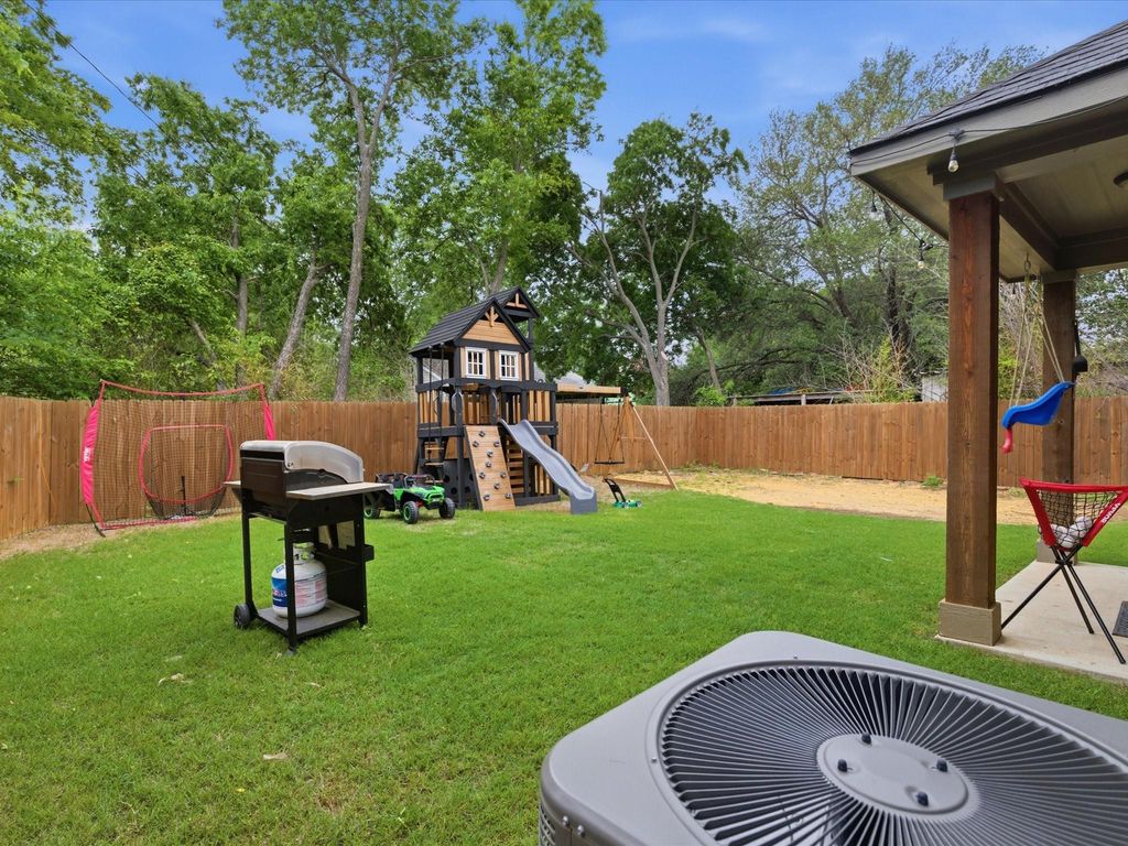 Welcome Home! 3 Bed 2 Bath well maintained 2020 build located in a cul-de-sac. Home features an extended driveway leading to the backyard of the house, ensuring ample parking. Step in, you will find elegant, boxed ceilings, ceramic tile throughout all the main areas, enhancing both style and functionality. Kitchen features granite countertops, complemented by an oversized island perfect for gatherings, modern stainless-steel appliances, black pendant lights and shaker style cabinets. The spacious dining area includes a charming window nook that invites plenty of natural light. All rooms have generously sized closets, bright and inviting bathrooms with granite countertops and white tile showers. Step outside to enjoy a covered patio and porch, perfect for relaxation. A playset in the backyard will remain, offering a delightful space for outdoor activities. Plus, the home is securely gated with a metal fence for added privacy. Minutes from Downtown Fort Worth, retail and highways. Come and see it this weekend!