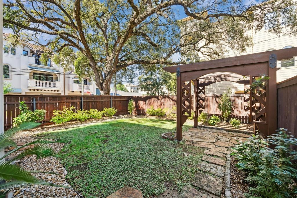 Stunning custom Mediterranean-style home on a 7,000 sq. ft. corner lot in the heart of the city. Thoughtfully designed with timeless architectural details, this home features 3 bedrooms, 2.5 baths, and multiple flex spaces. The first floor includes a study, guest bedroom, and living area that opens to a covered loggia. From the garage, there is a large gym that is plumbed for a bathroom. The second floor offers the main living area, dining room, kitchen, theater, and an impressive primary suite. A dramatic spiral staircase with a dome ceiling leads to a hidden third-floor game room. Additional highlights include pecan hardwood floors and shelves, tongue and groove beamed ceilings, lounge and theater. Enjoy downtown views, a private alley with guest parking, and convenient walkability to St. Thomas High School and Memorial Park trails.