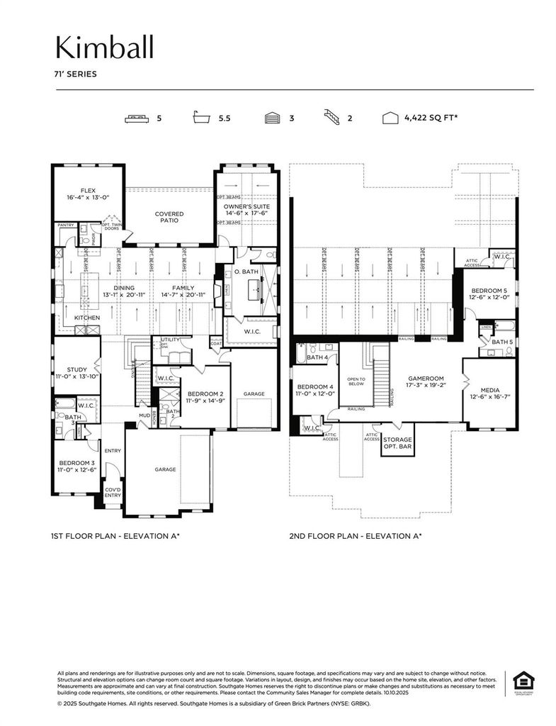 SOUTHGATE HOMES KIMBALL floor plan. Uncover the Kimball, a luxurious and spacious floorplan designed for sophisticated living. This exceptional 4,415-square-foot luxury home features five bedrooms, five-and-a-half bathrooms, and a three-car garage, offering ample space for both family and guests. Thoughtfully designed, the Kimball includes elegant downstairs guest rooms with private ensuites, a versatile flex space on the main level, and an impressive upstairs media room—ensuring every need is met with effortless grace. With its elegant design and flexible spaces, including a study and game room, this residence is perfect for both relaxation and grand-scale entertaining. Experience a truly flexible design that allows you to tailor this exquisite floorplan to your unique lifestyle. All of this is within the highly desired Windsong Ranch Community and Prosper ISD.