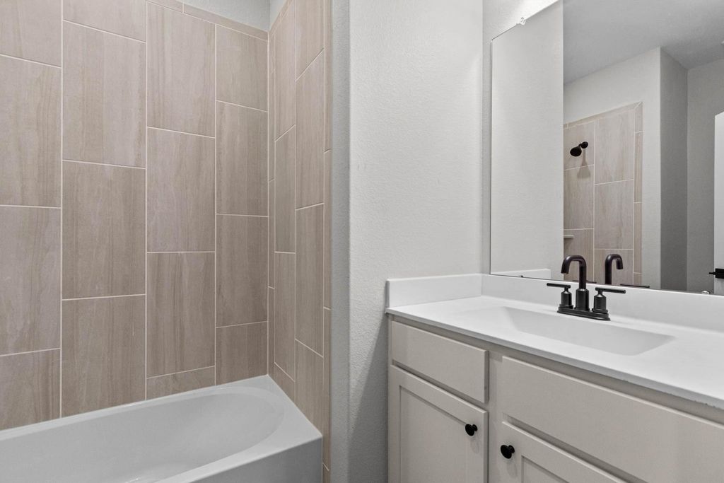 The Alwyn offers three bedrooms, two bathrooms and an impressive selection of upgrades. The open entertaining areas of this home create a comfortable space for entertaining friends and family. The inviting dining room is set off of the kitchen. In the kitchen, a granite-topped island with a breakfast bar provides a beautiful area for serving food or barstool seating. The chef of the family will adore the gorgeous wood cabinets topped with crown molding, the extra-deep undermounted sink, and the full suite of Whirlpool® appliances included in this kitchen at no additional cost! The master bedroom provides a view of the backyard, a spacious attached bathroom with a soaking tub, step in shower and a large walk-in closet.