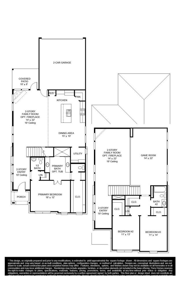 Generous two-story entry with 19-foot ceiling extends to the family room. Two-story family room offers an abundance of natural lighting and flows into the kitchen and dining area. Island kitchen with built-in seating space and a corner walk-in pantry. Secluded primary suite located on the first floor. French doors open to the primary bath with dual vanities, a large glass enclosed shower and a walk-in closet. The second level boasts an inviting game room that overlooks the two-story family room, secondary bedrooms with walk-in closets, additional storage space and a linen closet. Utility room. Two-car garage.