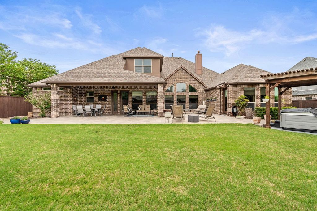 Discover refined craftsmanship and thoughtful design in this stunning custom-built residence by Jeff Pfeifer Custom Builder, set on a generous lot that invites both everyday enjoyment and memorable entertaining. Step outside to your private resort-style retreat, where a spacious covered patio flows seamlessly into an extended entertaining area. A beautifully crafted pergola shelters a high-end spa loaded with premium features—the perfect setting for relaxing evenings. Inside, an open and airy floorplan welcomes you with dramatic vaulted ceilings accented by beams, a fully finished focal fireplace, and walls of windows that bathe the living space in natural light. The gourmet kitchen is a true chef's dream: custom tri-level cabinetry with pull-out drawers, expansive quartz countertops, an oversized island, Bosch appliances, and a spacious walk-in pantry. A dedicated office is tucked just off the entry, while a flexible bonus space offers the ideal spot for a second office, home gym, or hobby room. A private media room on the main level is perfect for movie nights. The secluded primary suite sits at the rear of the home with serene views of the outdoor living area, and the spa-inspired primary bath delivers dual vanities, split sinks, and an oversized shower. For ultimate convenience, the primary closet connects directly to the laundry room. Upstairs, a large game room with a dry bar sets the stage for fun, surrounded by three generously sized bedrooms—each with its own walk-in closet. Rich in elegance with a neutral palette and quality touches throughout, the home is completed by an oversized 3-car garage with epoxy floors and a bonus 11' x 17' workshop with sink—a true craftsman's delight. Every detail has been considered. Come experience the quality and character. You will enjoy the La Cima homeowner amenities and landscaped inviting neighborhood. ________________________________________