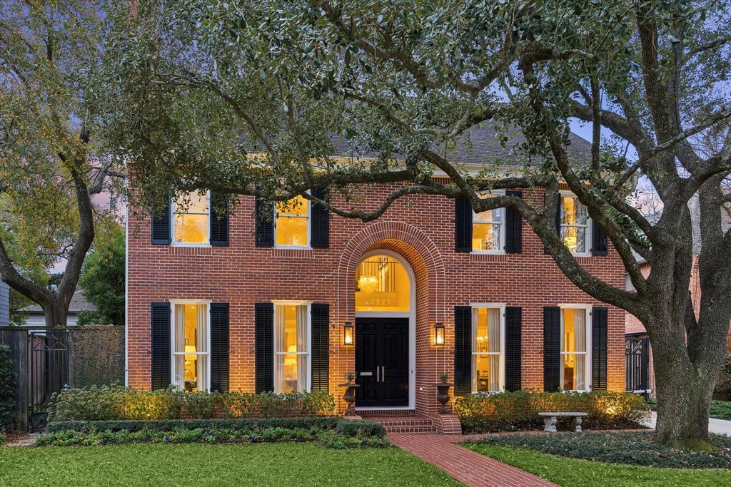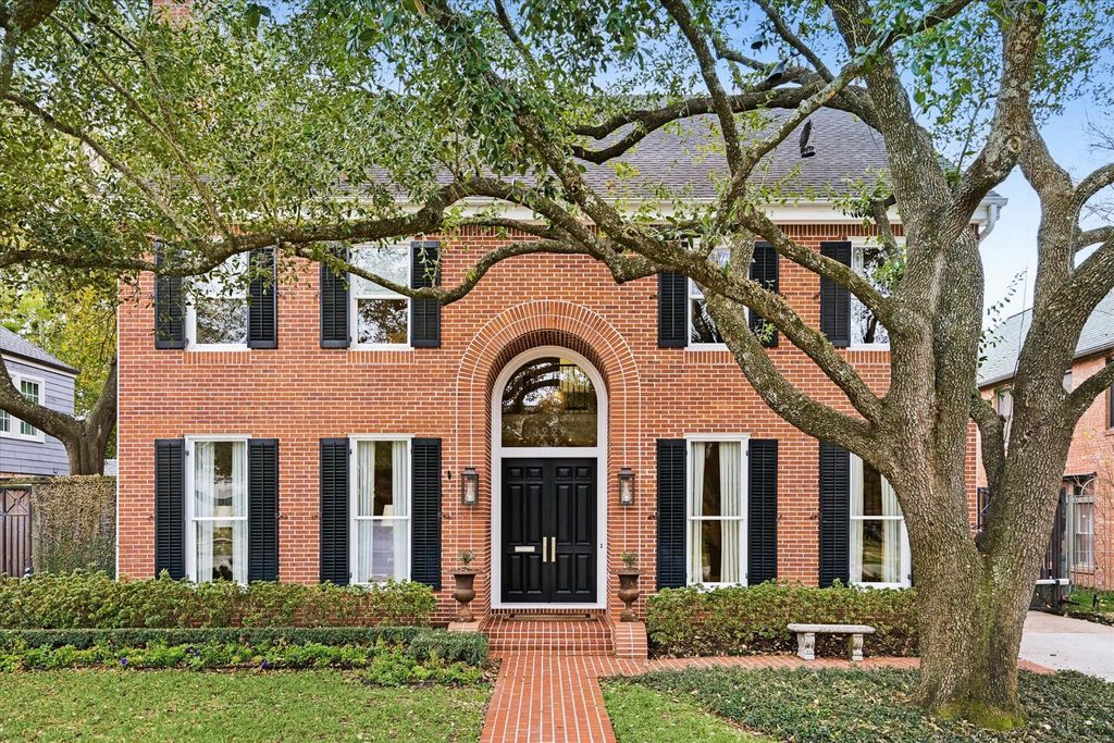 Just a block off River Oaks Boulevard, this classic brick two-story residence blends timeless design with a refined modern sensibility and exceptional livability. Interiors by Jerry Jeanmard feature hardwood floors throughout the living areas and bedrooms, three fireplaces, high ceilings, and architectural details. A gallery-style living area offers multiple seating and dining options, ideal for entertaining large gatherings, complemented by a bar and open island kitchen. An elevator and generator add convenience, while a private office over the garage provides flexible additional living space. Outdoors, enjoy a pool with fountain, a covered porch overlooking the landscaped patio and garden, and dramatic landscape lighting. Upstairs are three bedrooms, including a luxurious primary suite with a fireplace and sitting area, a generous closet, and separate bathing and sink areas. Generous storage throughout, including a large floored attic. A truly stunning home in a premier location.