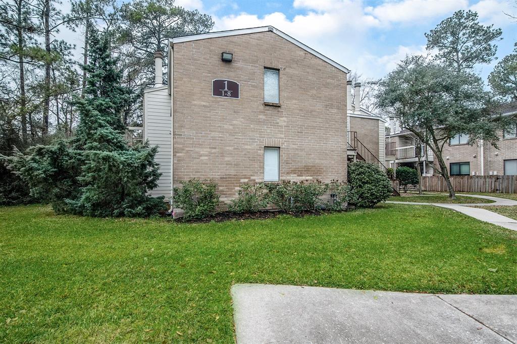 BEST LOCATION in Creekwood Village condos. Modern corner lot overlooking green belt. Large private balcony for Sunday BBQ's, NEW floor throughout, large rooms with high ceilings in living area.Outdoor storage. Nearby parking with walking trail to your new home. Updated Kitchen for Sunday dinners. Granite countertops. Fireplace. Best affordable location in The Woodlands, TX. Voted best suburbs to live in the USA.