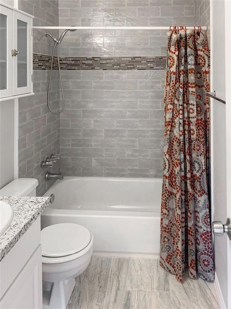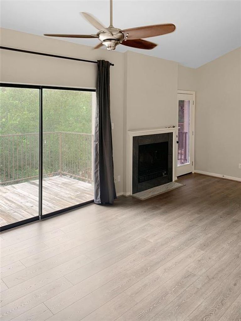 Lovely 2 bedroom 1 bath Condo. PER HOA RULES & REGULATIONS - The MAXIMUM OCCUPANCY for the UNITS in Creekwood Village is 2 persons per bedroom. High ceilings, granite backsplash in the kitchen. Laminate floors in the living/breakfast room, along with a nice electric fireplace. Includes a refrigerator and full size washer and dryer. Water and trash bills are also included. Located just 5 minutes from The Woodlands Mall, Market Street and other amenities. You are in walking distance from trails, shopping center, and schools.