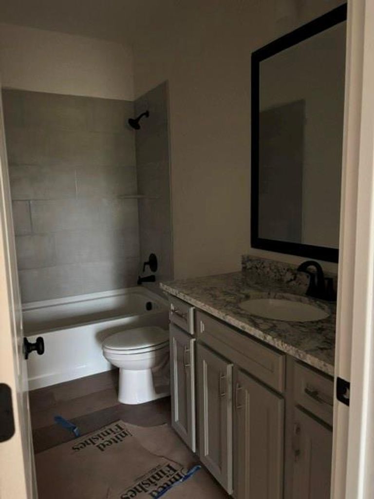 This Ravine II B in the Two Step Farm community has an open floor plan with 3 bedrooms and 2 full bathrooms. Upgrades added in this home include quartz counters, luxury vinyl plank flooring added in all bedrooms, undermount cabinet lighting, and more. Special plan features include a breakfast bar, energy efficient stainless gas range, dishwasher, and exterior vented micro-hood, undermount sinks in the kitchen and bathrooms, double sink vanity, walk-in closet, and tiled shower with semi-frameless door in owner's suite, Lasso Wi-Fi (1 GB), smart connect Wi-Fi thermostat, generator pre-wire, low voltage package, keyless front door and garage door, installed gutters and downspouts, fully bricked with painted garage door, energy efficient low E tilt-in windows, tankless gas water heater, radiant barrier roof sheathing, rear porch, fully sodded and irrigated yard with landscaping plus a 6 ft privacy fence and much more!