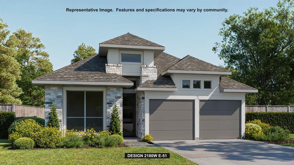 Extended entry with 12-foot ceiling leads to open kitchen, dining area and family room with 10-foot ceilings throughout. Kitchen features walk-in pantry, a 5-burner gas cooktop, generous counter space and inviting island with built-in seating space. Dining area features wall of windows. Family room features wall of windows. Primary suite with 10-foot ceiling and wall of windows. Double doors lead to primary bath with dual vanities, freestanding tub, separate glass-enclosed shower and large walk-in closet with access to utility room. A guest suite with private bath adds to this one-story design. Covered backyard patio. Mud room off two-car garage.