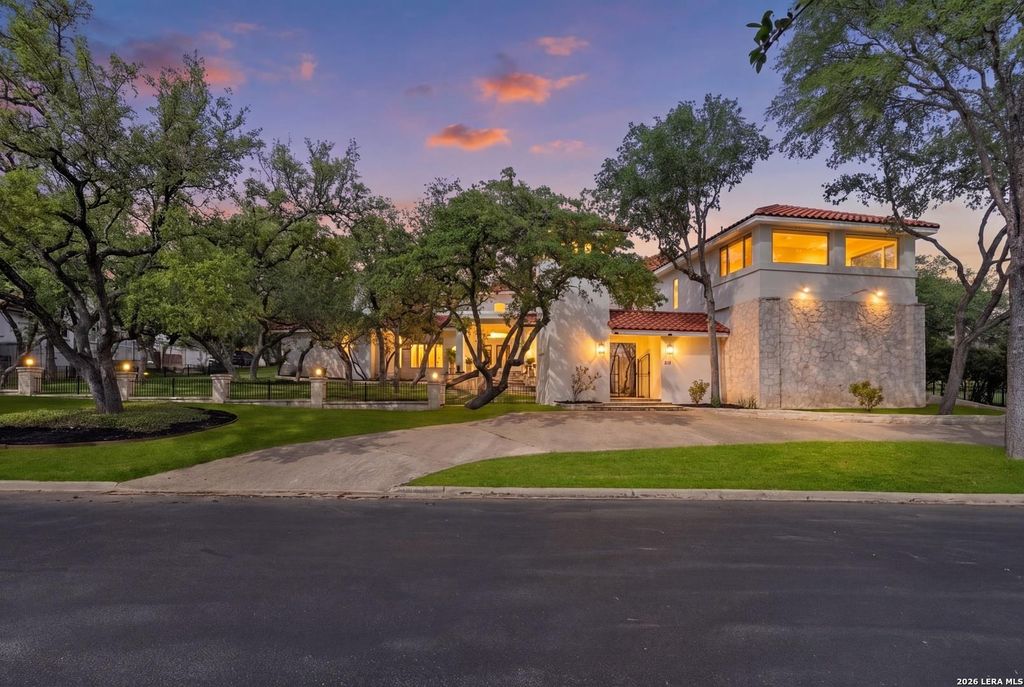 Experience elevated living inside the gates of The Dominion, where timeless elegance meets exceptional comfort in this expansive, entertainer's dream estate, enhanced with recent updates throughout. From the moment you enter, you're greeted by soaring 20-foot ceilings, rich marble floors, and a stunning double-sided gas fireplace that creates a dramatic focal point between the formal living and dining spaces. Designed for unforgettable gatherings, the home offers multiple oversized living areas, a full wet bar with icemaker and refrigerator, and seamless flow into a spectacular sunroom. The sunroom is a showstopper / fully climate-controlled with walls of sliding glass doors that open to the outdoors, creating the perfect indoor-outdoor experience and leaving plenty of room to design your dream pool retreat. The primary suite is pure luxury, featuring its own gas fireplace, private wet bar, dual walk-in closets, and a spa-inspired bathroom with soaking tub and separate shower / your ow