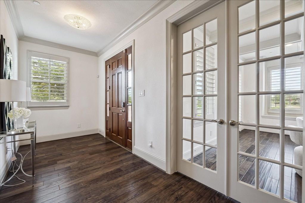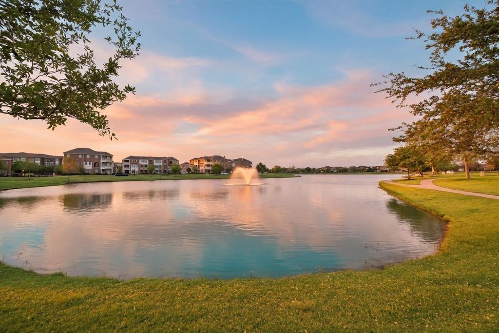 Stunning lakefront townhome in the sought-after Point at Imperial community, offering breathtaking water views from multiple private balconies.This elegant 3-story residence showcases rich dark hardwd flrs, soaring ceilings & timeless East Coast brick architecture. Entertain in style with a formal dining rm/sun rm/gamerm featuring an exposed brick accent wall,a chef's kitchen boasting granite counters,custom cabinetry, farmhouse sink & large island. The sun-drenched living area flows effortlessly to the outdoors, framing serene lake vistas. The luxurious primary suite impresses with a freestanding soaking tub, glass shower, dual vanities &a custom walk-in closet with island. A private elevator, wet bar, coffered-ceiling study &plantation shutters throughout add to the refined elegance.A true lock-and-leave luxury lifestyle awaits with waterfront serenity,walking trails,fountains,parks,& low-maintenance in one of Sugar Land’s most desirable enclaves. Call the Aida Younis Team Today!