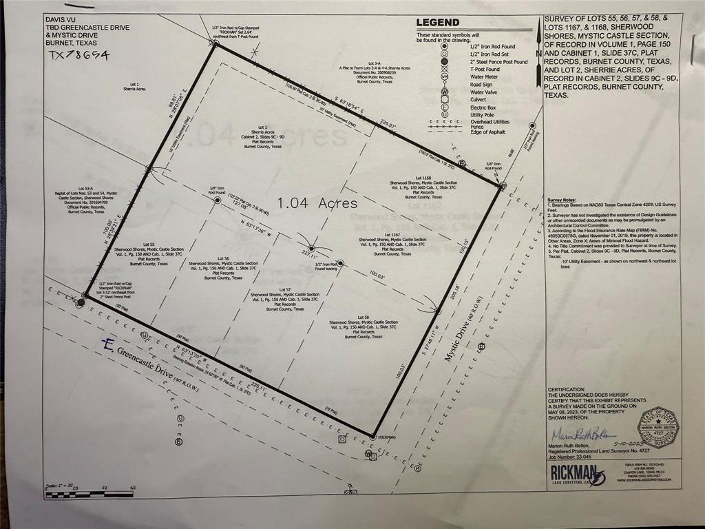 S6560: Lot 55,56,57,58 Greencastle Drive AND 1167,1168 Mystic Drive, Sherwood Shores, Mystic Castle section AND Lot 2 Sherrie Acres, Granite Shoals, Burnet County, TX 78654