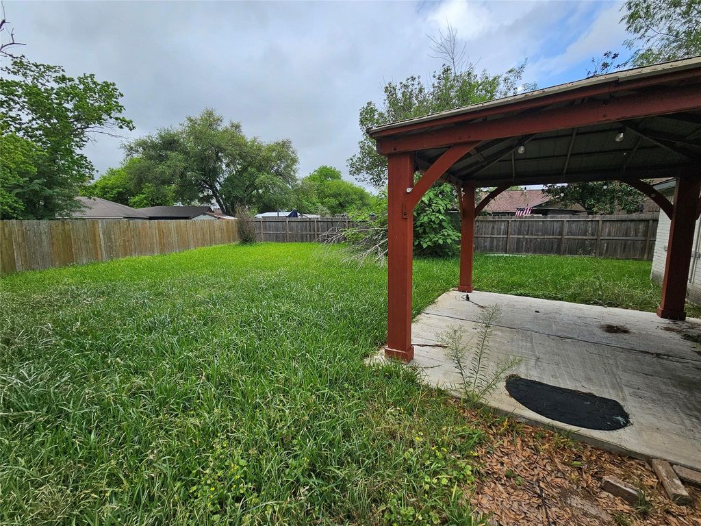 Nice updated home, separate dinging room, large living room with fire place. Split floor plan with two bedrooms and one bathroom on one side of the house and master bedroom on the other. Covered patio in a large fenced back yard.
