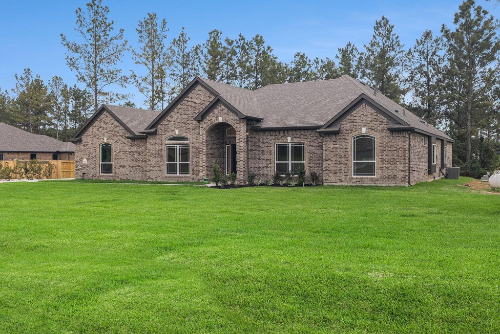 This stunning 4-bed, 2.5-bath home offers 2,482 sq ft of open living space on a ¾-acre lot with a 3-car side-load garage and great curb appeal. The elegant entry leads to a spacious dining area and chef’s kitchen with 42" cabinets, Quartz countertops, designer backsplash, and stainless steel built-in appliances with Gas cooktop. The open floor plan is a spacious family room. Laminate wood floors throughout with carpet in bedrooms only. The primary suite includes high ceilings, dual vanities, oversized shower, and large walk-in closet. Extras: covered back porch, USB/media outlets, sprinklers, propane, prewire for surround sound and cameras and more. Located in Conroe ISD near I-45 and The Woodlands!