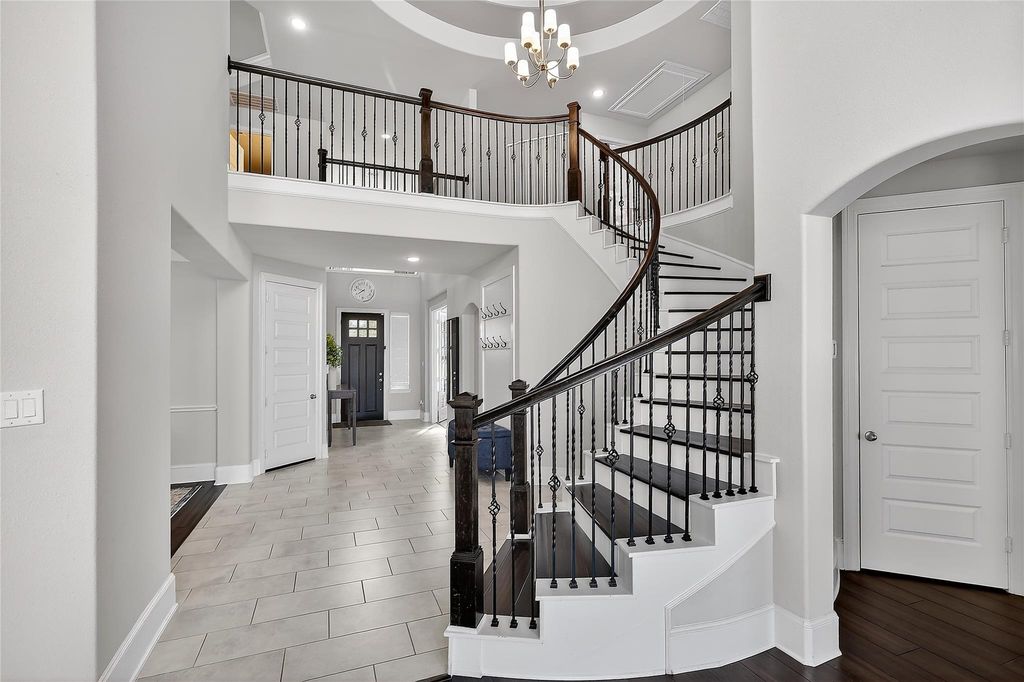 Welcome to this stunning 2-story custom Westin Home in the sought-after Balmoral community. This 5-bedroom, 4.5-bath home features a grand entry with soaring ceilings and wood floors, leading to the formal dining room and private office. Floor-to-ceiling windows fill the space with natural light. The living room has a cozy gas fireplace and opens to a gourmet kitchen with granite countertops, ample cabinetry, and a walk-in pantry. The primary suite offers a soaking tub, oversized shower, dual vanities, and walk-in closets. A main-floor guest suite provides a private bath and comfort for visitors. Upstairs includes three bedrooms, two full baths, a game room, and a media room. Outside, enjoy an extended patio and spacious backyard. Additional features include a 3-car garage, sprinkler system, and whole-house Generac generator. Just minutes from Beltway 8 and under 30 minutes to Downtown Houston.