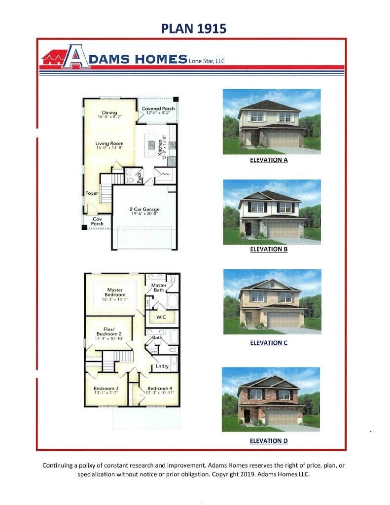 Welcome to the Family Retreat, floor plan 1915B. Elegance awaits in this exquisite 2-story, 4-bedroom, 2.5-bath new construction home. With a generous 1915 sqft, this residence is in highly sought after Dickinson ISD, where you can savor the tranquil lake from your own covered back patio. Step inside and be greeted by tall ceilings that amplify the sense of space. Crown molding w high 5 1/2-inch baseboards adorn the interiors, Rockfort style 5-panel interior doors & a touch of charm & showcasing attention to detail. The heart of this home is the architecturally designed kitchen. Granite countertops complement the stainless-steel kitchen appliances, creating a stylish and functional space. The large 42"x36" shower and garden tub in the primary bath offer a serene escape, while the double sinks in both primary and secondary baths ensure convenience. The VLP floors in family room, kitchen, dining areas, baths, and utility room combine aesthetics with easy maintenance.