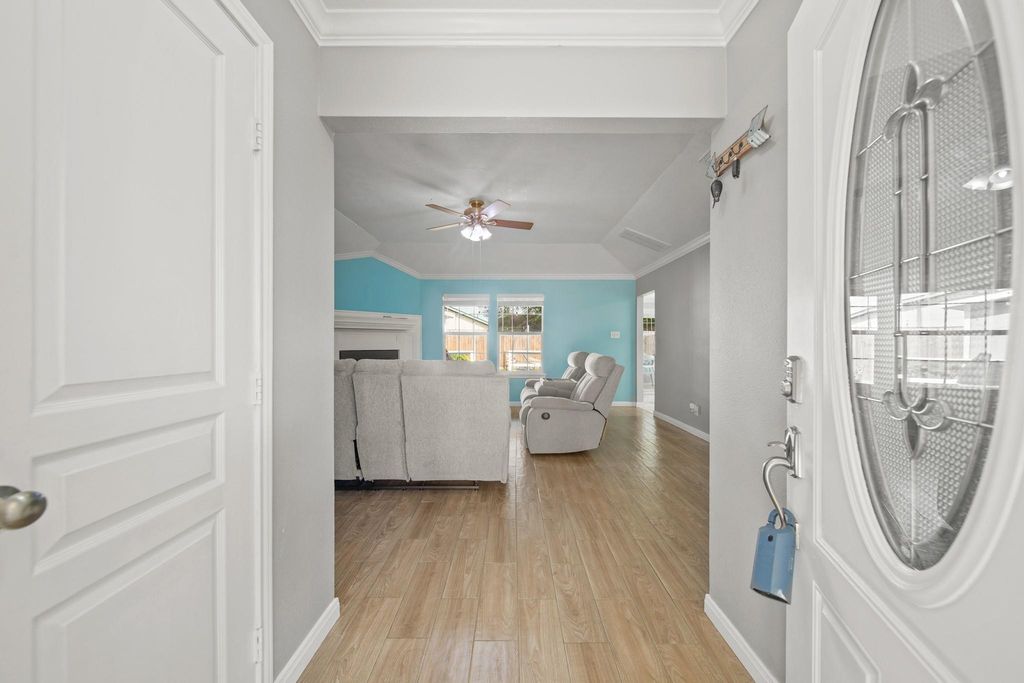 Charming 3 bedroom, 2 bath home on a cul-de-sac lot with an oversized backyard! This split floor plan offers privacy and functionality. Step inside to an oversized living room featuring a cozy fireplace and abundant natural light. The updated kitchen boasts granite countertops, bright white cabinets, and a classic subway tile backsplash, creating a timeless black & white palette to complement any style. The dining area overlooks the backyard, perfect for everyday living or entertaining. The spacious primary suite accommodates large furniture and includes an en-suite bath with double sinks, updated shower, separate tub, and walk-in closet. Secondary bedrooms are generously sized, with the third bedroom ideal for a mother-in-law suite or college student, offering private entry and driveway access. Enjoy outdoor living with a large patio, wired for TV, deck, firepit area, and oversized storage shed. Tile throughout, oversized laundry, and a brand new roof! Schedule your showing today!