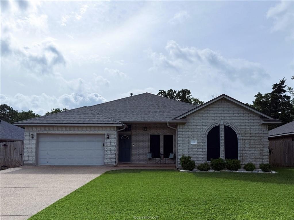 1512 Hunter Creek Drive is listed for sale at $ 374,500. The Single Family property has 4 bedrooms, 2 Full Bathrooms, 2110 square feet and was built in 2007. The lot size is 0.1854 Acres. ##BR##This spacious 4-bedroom, 2-bathroom home offers approximately 2,110 square feet of comfortable living space in a desirable College Station location. The open-concept floor plan features a generous kitchen with granite countertops, an eating bar, tile backsplash, and abundant cabinet and pantry storage. The split bedroom layout provides privacy with the primary suite located on the opposite side of the home from the secondary bedrooms. The primary bathroom includes a separate garden tub and shower. Recent updates include a new roof installed in 2021 and a new HVAC system from 2020. Additional highlights include a bright laundry room with a window, built-in clothes rods, shelves, and a folding table, plus covered front and back patios. The fenced in backyard backs up to a greenbelt and features an extended concrete patio, offering a peaceful outdoor space for leisure activities or entertaining. The property is conveniently located near schools, shopping, restaurants, and major roadways for easy access.This well-maintained home provides a great combination of thoughtful layout, functional updates, and desirable location in College Station. Come see your new home today!