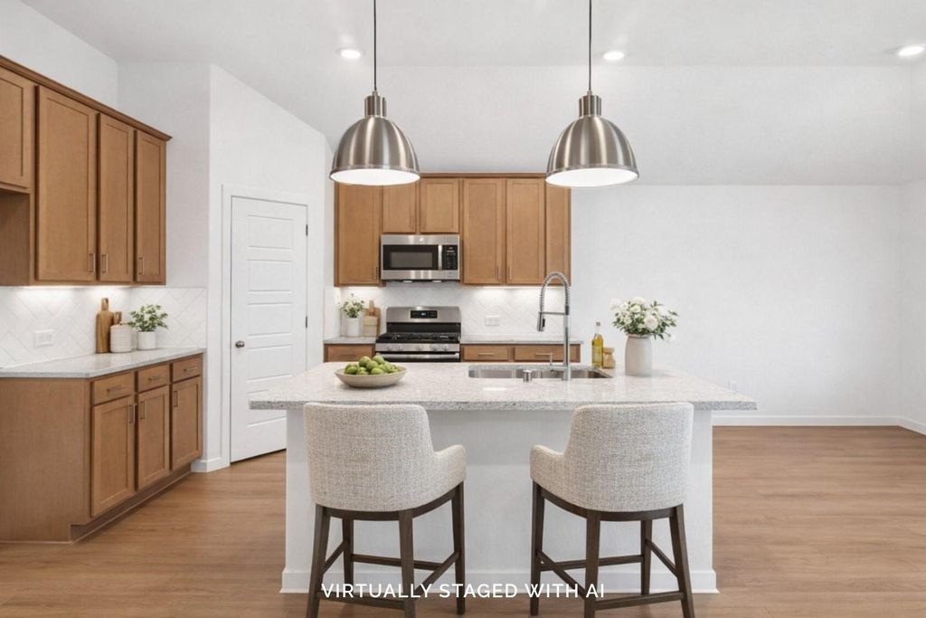 READY NOW. The Polo floorplan! This home is 1,619 square feet and features 3 spacious bedrooms, 2 full bathrooms, and a 2-car garage, making it ideal for hosting gatherings with friends and family. The open-concept design includes high ceilings in the family and dining room, adding to the allure of the space. The kitchen provides a stunning view of the living areas and is perfect for preparing and serving meals in the adjacent dining room. Outdoor enthusiasts will appreciate the covered patio at the rear of the house, offering an ideal spot to enjoy the backyard. The secondary bedrooms are located towards the front of the home, sharing access to the hall bath, while the owner's suite is at the rear for added privacy and tranquility. Additionally, the deluxe bathroom has a deep soaking tub and a separate walk-in shower, perfect for bringing the spa feel home. Contact us to learn more!
