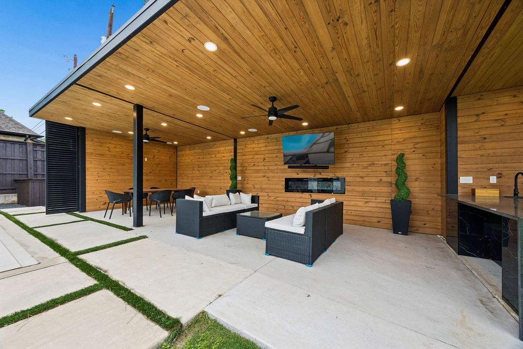 Welcome to modern living done right. This stunning home by award-winning Greico Modern Homes sits right in the heart of the private school corridor and is packed with style, light, and thoughtful design. From the moment you walk in, you’ll notice the soaring ceilings and walls of glass that flood the space with natural light. The open living, dining, and kitchen area flows effortlessly—perfect for hosting friends or just hanging out at home. The kitchen is sleek, functional, and made for gathering. The primary suite is a true retreat, featuring a spa-like bathroom, a huge walk-in closet, and even a private gym space—your own personal escape without leaving home. There’s also a flexible first-floor guest room that’s currently set up as an office. Step outside and it only gets better. The oversized lot gives you tons of options—think pool days, soccer games, adding a sports court, or even building a guest house. The pool cabana is ready for entertaining and weekends well spent. Tucked on a beautiful horseshoe-shaped street in desirable Walnut Hill Ridge and surrounded by multi-million-dollar homes, this is one of those neighborhoods people don’t want to leave. Plus, there are architectrural plans available if you want to expand in the future.