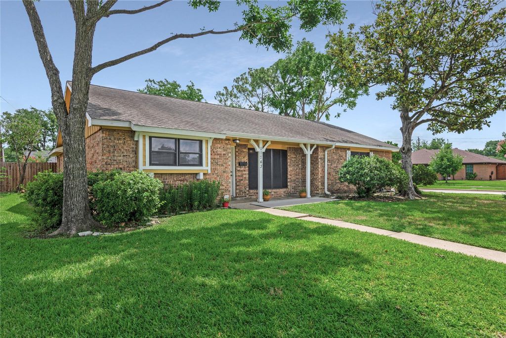 Step into this charming 3-bedroom 2-bath w/ 2-car garage on a oversized corner lot! This beautifully updated home features an open floor plan with wood look vinyl plank flooring through out, STORM WINDOWS & PEX PLUMBING! Fantastic updated kitchen W/ LARGE BAY WINDOW, GRANITE COUNTERTOPS, BREAKFAST BAR & TUMBLED TRAVERTINE STONE TILE BACKSPLASH, GAS RANGE TOP & BUILT-IN MICROWAVE! Large Flex/Game room w/ Large storage closets. Spacious primary bedroom w/ walk-in closet. Both bathrooms have been updated w/ replaced vanities & tiled Tub/showers. All custom color paint inside! Huge backyard w/ Patio & LG. storage building. Close access to Beltway 8 and I-45. Walking distance to Elementary & Middle schools. **ALL ALUMINUM WIRING HAS BEEN REPLACED W/ COPPER WIRING & NEW BREAKERBOX INSTALLED!
