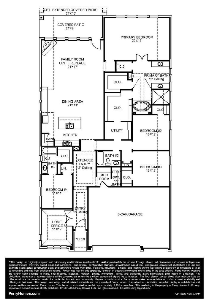 Welcoming entry framed by home office with French doors. Generous family room extends to kitchen and dining area. Island kitchen with built-in seating space and corner walk-in pantry. Primary suite offers a large wall of windows. Primary bathroom hosts a double door entry, dual vanities, garden tub, separate glass enclosed shower, two walk-in closets and a private entry to the utility room. Guest suite with full bathroom and walk-in closet. Secondary bedrooms feature walk-in closets. Covered backyard patio. Mud room off the three-car garage.