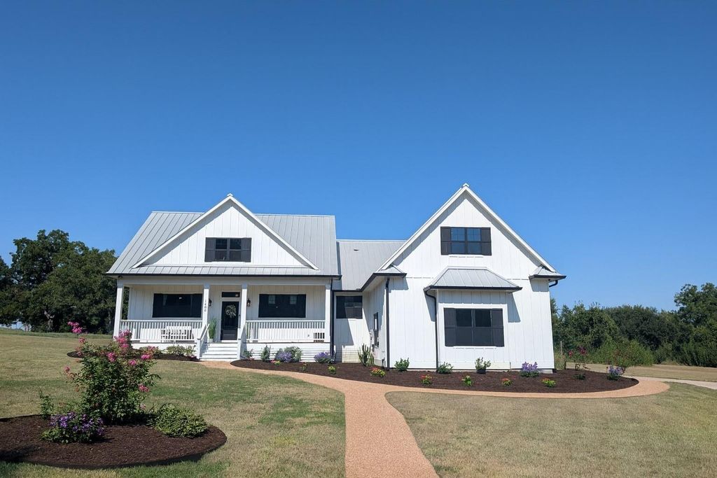 Beautiful modern farmhouse on 2.5 acres in Brenham! Ideally located just minutes from Downtown Brenham with quick access to Highway 290, this property offers the best of both worlds—peaceful acreage living with in-town convenience. Inside, you’ll find bright, open spaces with soaring ceilings, large picture windows, quartz countertops, wood flooring, and custom tile accents throughout. The thoughtful split floor plan creates a private primary suite, while the oversized laundry room with sink and exterior access (plus half bath) adds everyday functionality. Upstairs, a spacious bonus room with half bath and closet serves as a versatile flex space—perfect for a fourth bedroom, playroom, or media room. Relax on the screened-in patio with your morning coffee, overlooking serene trees and open land. With 2.5 acres, there’s plenty of room to design your dream backyard oasis, add a workshop, or create the retreat you’ve always envisioned.