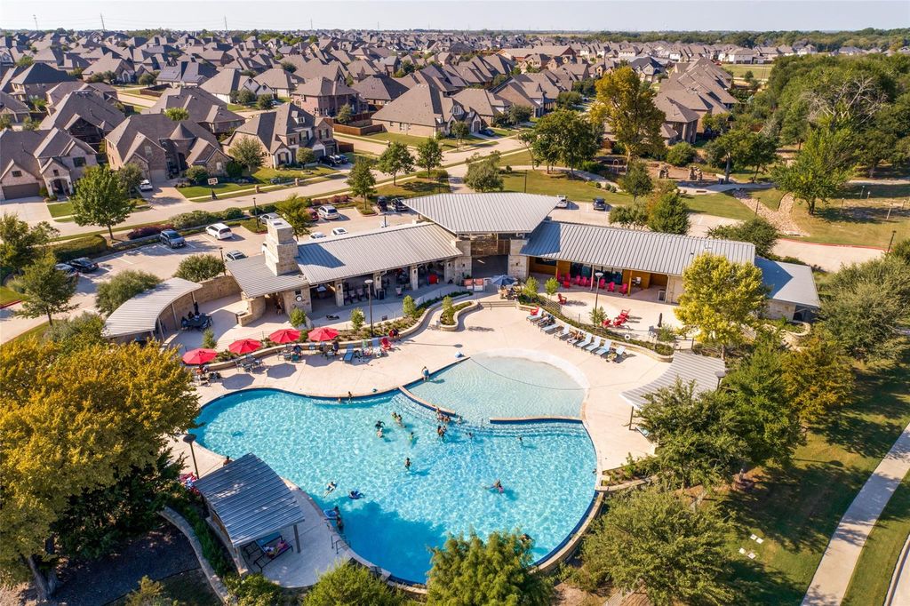 Better than new in Trinity Falls! This stunning true 1.5-story home offers 4 bedrooms, 4 full baths, a study, a multigenerational suite with its own living room, a game room, a media room, an over-length 2-car garage, and a whole-house Generac natural gas generator that automatically activates during a power outage. Peace of mind is built in. Oversized tile flows through the entry, kitchen, family room, and dining area. A private study features crown molding, a ceiling fan, and glass French doors. Three-way bedroom split: two secondary bedrooms with walk-in closets share a full bath; a multigenerational suite sits behind double doors with bedroom, full bath, walk-in closet, plus large living area, play area, or second game room; the primary suite features a step-up ceiling with double crown molding, circular bay window, spa-like primary bath with separate tub and shower, granite counter tops, dual sinks, framed mirrors, and large walk-in closet. The gourmet kitchen boasts granite countertops, a huge island with a breakfast bar, stainless steel appliances, a gas cooktop, tall display cabinets, pendant lighting, and a large walk-in pantry. Vaulted family room opens to a 16x15 covered patio with stamped concrete, gas fireplace, and built-in grill. Upstairs: game room, media room (all equipment conveys), and full bath. Utility room with gas and electric dryer connections. 24-ft garage includes utility sink, mud bench, and Versa Lift - an electric lift system to move items to attic storage effortlessly. Sprinkler. Security. Trinity Falls amenities include two pools—The Lodge (with fitness center) and The Club—plus playgrounds, scenic ponds, and trails. Please see MLS Documents Section for Trinity Falls Information and MUD Disclosure. All information provided is deemed reliable but not guaranteed.