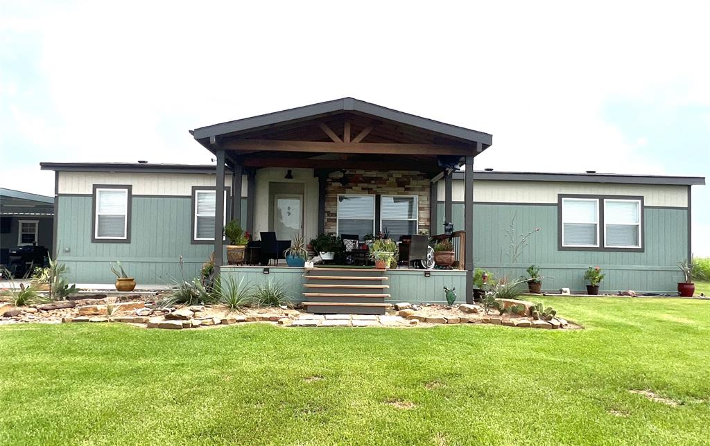 Just minutes out of town you do not want to miss this amazing property. 2112 square feet living area modular home built in 2023 with 4 bedrooms, 2 baths, custom built front porch on 3.96 unrestricted acres. Conforming climatized party room/bonus room on slab with covered area. Private well and aerobic septic system. Beautiful oak trees, stocked pond, tastefully landscaped, RV hook up. The home itself is built with 2x6 outside walls, smart board siding, composition roof and matching skirting. Inside you find a tastefully painted interior, vinyl flooring, sheetrock walls, open concept, split floor plan. Stainless appliances with matching farmhouse sink, large island, walk in pantry and raised panel cabinetry is a must see. Large living area with built-in entertainment center. The large primary bedroom with walk-in closet is complemented by an amazing ensuite bath-double sinks, large soaking tub, open ended walk in shower, separate vaniety area, additioanl closet and built-ins.