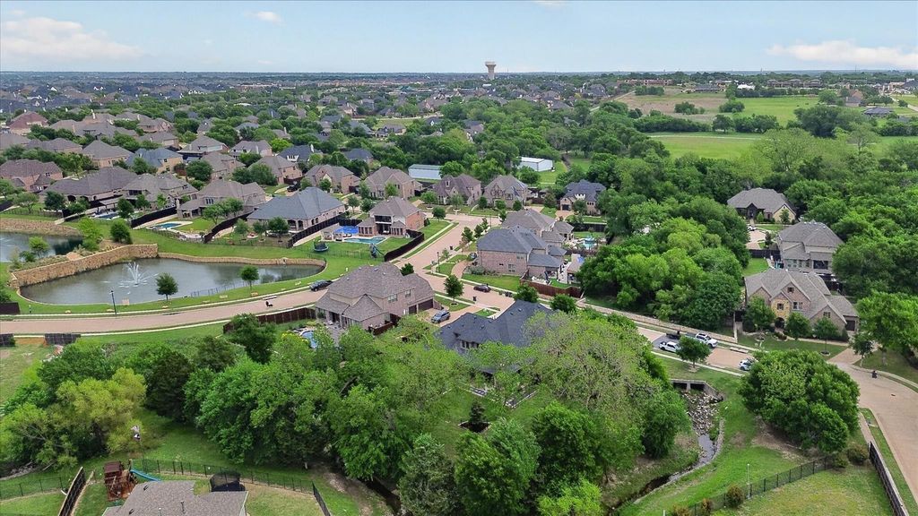 Located in the gated community of Crestview at Prosper, this property sits on an oversized lot backing to a wooded creek—offering a level of privacy and natural setting that’s hard to find in Prosper. With over 4,700 square feet, the home delivers 5 bedrooms, 4.5 bathrooms, a private study, media room, game room, and an oversized 3-car garage. The open-concept layout with a split-bedroom design makes the space feel both functional and effortless—ideal for everyday living and entertaining. The kitchen has been recently updated with a clean, modern look, paired with new lighting throughout the home. Real hardwood floors and newer carpet add warmth while keeping the overall feel fresh and move-in ready. The main level features a dedicated media room, while upstairs offers a game room and a private ensuite bedroom—perfect for guests or teenagers. The primary suite is tucked away for privacy and features its own fireplace, creating a true retreat feel. Out back, the oversized covered patio with a built-in fireplace extends your living space year-round—set against a peaceful, tree-lined backdrop. Rare lot. Thoughtful layout. Clean updates. A standout opportunity in Crestview.