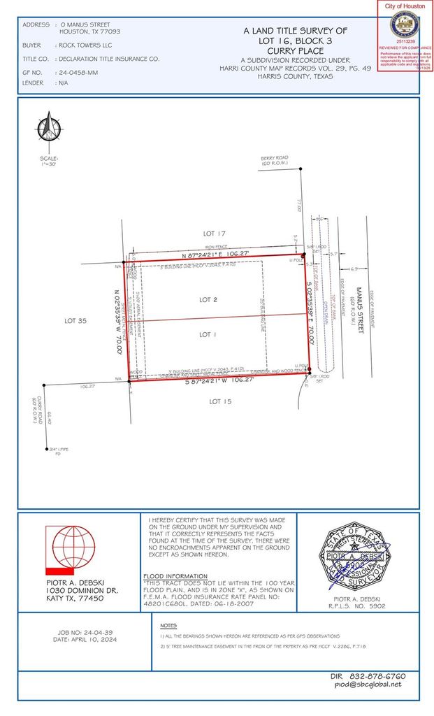 Two subdivided lots, each separately approved and permitted for duplex construction. Each lot is priced at $95,000 and available for individual purchase or as a package. Lots are shovel-ready with approved floor plans for each lot attached in the document section. Photos reflect a similar completed build by the same builder and the approved building layout. Utilities available: water, sewer, gas, electric, and cable. Quick access to Eastex Freeway. Minutes from Downtown Houston.