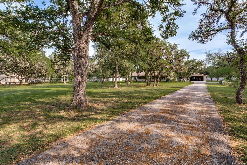 This is the one you have been searching for, with your invitation to experience two and a half acres of sprawling tranquility in this one-story, gated country ranch-style retreat. Nestled among mature trees and fully fenced-with partial cross fencing ready for livestock, this property offers the perfect blend of peaceful rural living and everyday convenience. The home features a spacious layout designed for comfort and easy living, while the exterior is where this property truly shines. A massive 4-car garage/shop with over 1,500 square feet of covered slab space, ideal for projects, equipment, or entertainment. For those with a green thumb, there's an approximately 90 sq ft greenhouse, along with an additional 400 sq ft of combined shed and storage buildings to keep everything organized. Toward the back of the property, you'll find another slabbed structure ready for livestock, hobbies, or future customization. An above-ground pool adds the perfect spot to relax and cool off while enj
