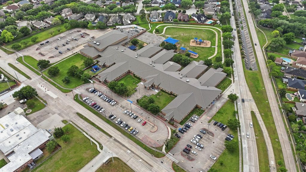 Located in the heart of League City, this beautifully updated home offers an exceptional blend of space, comfort, and elevated design. Featuring 5 bedrooms, 4 full bathrooms, and a rare 4 car tandem garage with porte cochere, the layout is ideal for both everyday living and entertaining. The open concept design is filled with natural light and showcases high ceilings and a wall of windows overlooking the backyard. The kitchen is designed for gathering with quartz countertops, dual ovens, a large island, and walk in pantry. The first-floor primary suite offers a spa inspired bath with soaking tub, separate shower, dual vanities, and a spacious walk in closet. A secondary bedroom and full bath are also downstairs. Upstairs includes three bedrooms, two baths, and a game room. The oversized backyard features a covered patio, firepit, and playset. Recent updates include roof, interior paint, upstairs AC, water heater, fence, and lighting