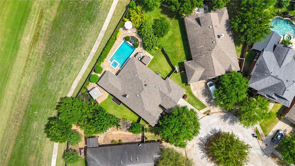 Experience a rare fusion of high-end luxury and total seclusion in this one-of-a-kind single-story estate. Tucked away on an oversized, pie-shaped cul-de-sac lot, this property backs to a lush greenbelt and walking trail for ultimate privacy. The interior is defined by sophisticated finishes, including ceramic tile throughout common areas and a chef’s kitchen featuring premium marble counters, a massive island with farm sink, 5-burner gas cooktop, double ovens, and custom soft-close cabinetry. Beyond the wine fridge and designer lighting lies a resort-style backyard: a custom pool and spa, Belgard paver sun deck, and a 3-hole artificial turf putting green. Relax under the extended covered patio or separate pergola, kept comfortable by a mosquito system and gas fire bowl. Boasting a recent roof, recent HVAC, and sound system, this 3BR plus office/4th BR offers an extended garage and peak efficiency. High-end living meets an outdoor sanctuary in this meticulously upgraded masterpiece.