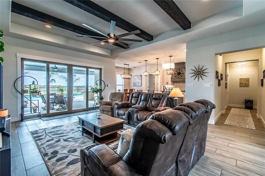 Stunning 4-bedroom, 3-bath luxury home located in the desirable Water''s Edge subdivision on the south side of Corpus Christi. Built in 2020, this home sits on a spacious half-acre lot and offers the perfect blend of comfort, style, and functionality. Enjoy your private backyard retreat featuring a large freestyle saltwater pool with in-pool seating and an expansive covered patio complete with granite countertops and a built-in-grill ideal for entertaining. Inside, the open-concept layout showcases a beautifully designed kitchen with a large center island, quartz countertops, stainless steel sink, under and above cabinet lighting, custom wooden vent hood, and a walk-in-pantry. The oversized primary suite features vaulted ceilings, serene pool views, and a spa-like bath with marble built-ins and a freestanding soaking tub. Additional features include: two bedrooms with Jack-and-Jill bath, oversized fourth bedroom (perfect game room), two office spaces, large laundry room, three-car garage, ceramic wood tile throughout, sprinkler system & water softener, exterior security cameras & pre-wired system. Located in sought-after London ISD, this home truly has it all. Schedule your private showing today!