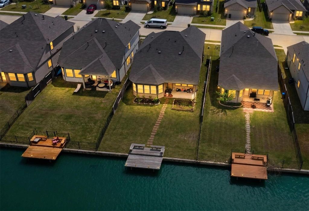 Immerse yourself in waterfront living at this stunning property with covered back patio and private dock overlooking the lake. This 3-bedroom, 2.5-bath home features high ceilings, vinyl plank flooring, a versatile home office/flex space that could also serve as a 4th bedroom, and an open kitchen with breakfast bar, granite counters and stainless steel appliances. Enjoy serene water views from the family room and primary bedroom, which also includes a sitting area and en-suite bath with a large walk-in closet. Upstairs, find a spacious game room and two additional bedrooms. Located in Katy ISD, close to amenities like HEB, I-10, 99, and Katy Asian Town, this home offers the perfect blend of comfort and convenience.