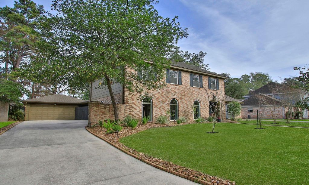 This spacious, move-in ready home offers pride of ownership in the coveted, tree-lined community of Huntwick Forest. The home blends architectural charm and quality craftmanship w thoughtful updates designed for today’s Buyer: Freshly painted interior; LED lighting and hardware; engineered hardwoods (no carpet); PEX plumbing; EE windows, doors and a 2025 15-Seer Carrier AC w new ductwork. You’ll love the custom built-ins, crown molding, wood beams and brick fireplace. Arched windows and a Bay window fill the home w sunlight and provide garden views. The home offers tons of storage and valuable workspace with 33 Kitchen cabinets, granite counters, 13' walk-in pantry, oversized closets and vanities. The homeowners were avid gardeners and originally designed the yard as a serene pollinator space w flowering plants and trees to attract Butterflies, Hummingbirds, Sparrows, Bluejays and Robins. It’s a great space for kids and pets to explore or just stretching out and enjoying the good life.