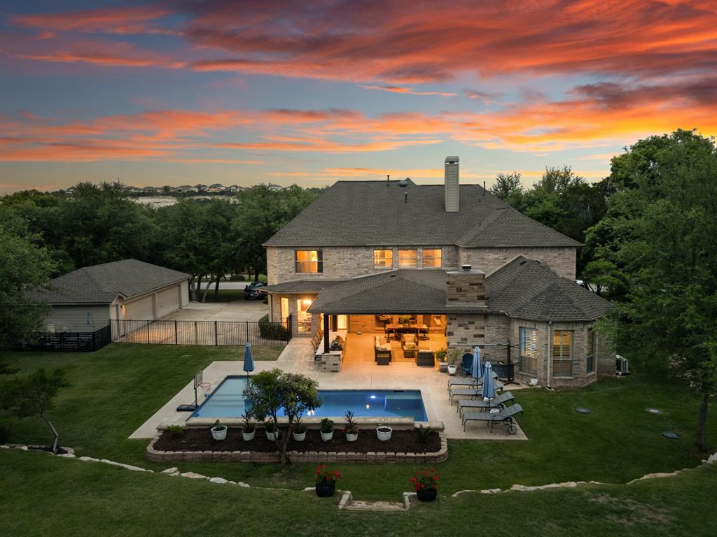 3609 Good Night Trl is listed for sale at $ 1,450,000. The Residential Single Family property has 6 bedrooms, 3 Full Bathrooms, 1 Half Bathroom, 5349 square feet and was built in 2008. The lot size is 1.213 Acres. ##BR##Welcome to Hill Country luxury at its finest. Situated on a sprawling, lot in the highly coveted Grand Mesa at Crystal Falls, this custom-built estate offers a blend of sophisticated interior design and a backyard oasis that rivals a private resort. This property provides the perfect balance of peaceful seclusion and community convenience. Characterized by classic Texas limestone and towering arched windows, step into a bright, open-concept floor plan designed for seamless living. Rich hardwood floors guide you through the main level, featuring a dedicated home office and a magnificent living room centered by a floor-to-ceiling stone fireplace. The chef’s kitchen is a true centerpiece, boasting crisp white cabinetry, premium stainless steel appliances including a built-in double oven, a massive center prep island with a gas cooktop, and a charming breakfast nook. The home’s layout is as functional as it is spacious. The primary suite serves as a true retreat on the main floor, while the second level features a sprawling loft area, a dedicated media room, and large secondary bedrooms. For those needing additional storage or a hobby space, a rare third-floor attic space offers incredible versatility. The exterior of this property is truly the showstopper. Step outside to a massive covered patio featuring a wood-plank ceiling, recessed lighting, and a stone fireplace. The outdoor kitchen and expansive bar area overlook a sparkling pool. Beyond the pool, the lush, oversized lawn extends to a custom fire pit area, providing the perfect spot for stargazing in the cool Texas evenings. Living in Crystal Falls means more than just a beautiful home; it’s a lifestyle. Residents enjoy access to the premium Quarry Park pool complexes, disc golf, fishing ponds, and miles of scenic hiking trails. With close proximity to the Crystal Falls Golf Club, this home represents a rare opportunity to own a piece of one of Central Texas’s most prestigious master-planned communities.