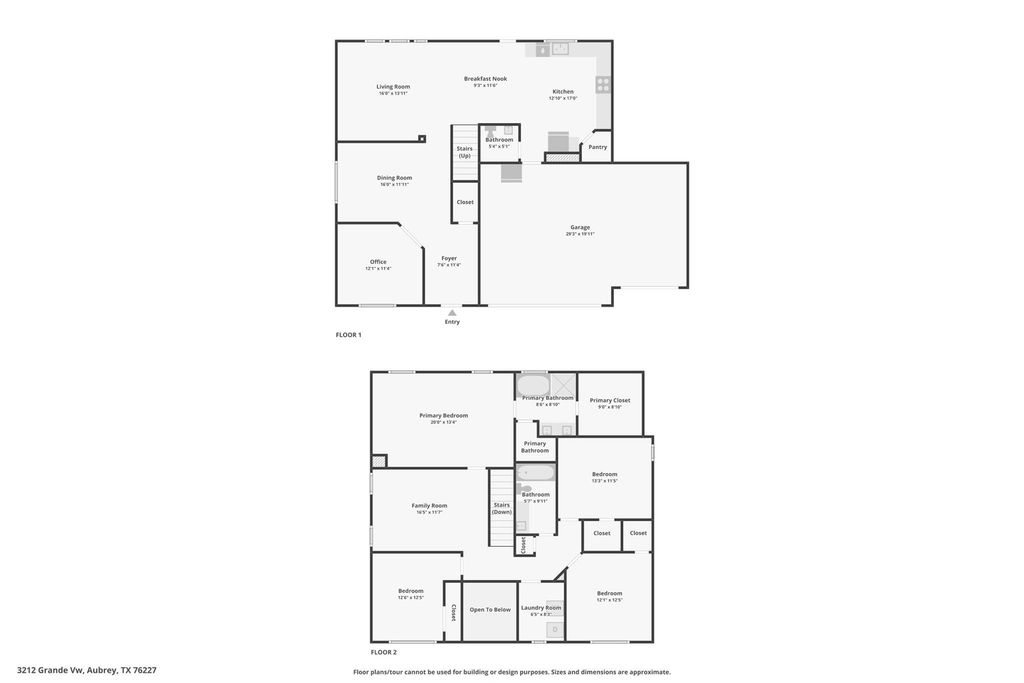 3212 Grande Vw is listed for sale at $ 400,000. The Residential - Single Family property has 4 bedrooms, 2 Full Bathrooms, 1 Half Bathroom, 2576 square feet and was built in 2020. The lot size is 0.193 Acres. ##BR##Located in the desirable ArrowBrooke community in Aubrey, TX, this impressive two level home delivers space, flexibility, and comfort in a thoughtfully designed layout. A soaring two story foyer creates a striking first impression, leading into a main level with a dedicated office and formal dining room, perfect for everyday living and hosting. The back of the home opens with an inviting living room and eat in kitchen that flow seamlessly together, creating a bright, connected gathering space. Upstairs, a versatile loft offers the perfect flex space for a media area, game room, or lounge. The primary suite is privately situated on the upper level alongside the secondary bedrooms and features an ensuite bath with dual sinks, a soaking tub, and a separate shower. An upper level laundry room adds everyday convenience. Outside, a fenced backyard with a patio creates an ideal setting for relaxing or entertaining, while the 3 car garage provides ample storage and parking. Residents of ArrowBrooke enjoy amenities including a community pool, clubhouse, walking trails, greenbelts, parks, playgrounds, and a private lake-pond. Conveniently located off Highway 380 and FM 1385, this home offers easy access to Frisco, Little Elm, Denton, and Prosper, placing shopping, dining, and entertainment within reach. Zoned to Denton ISD, this location blends suburban comfort with accessibility. Schedule your tour today. Discounted rate options and no lender fee future refinancing may be available for qualified buyers of this home. Current interest rate may be assumable.