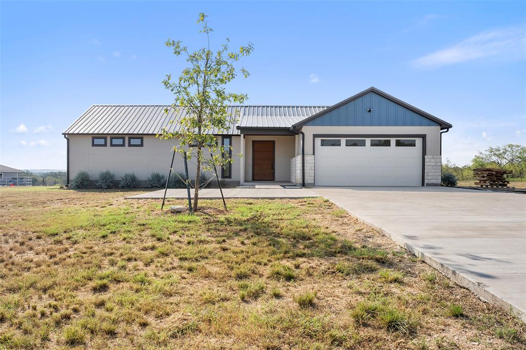 Situated on nearly 2 acres in the peaceful Blue Sky Estates community, this brand new 2024 build offers the perfect blend of modern design, space, and privacy. With 4 bedrooms, 3.5 bathrooms, and 2,687 sqft, this home is thoughtfully laid out with all bedrooms on one level and no interior steps for easy living. Step inside to an open, light filled floorplan featuring high ceilings, recessed lighting, and a spacious living area that flows seamlessly into the kitchen. The kitchen is a true centerpiece with a large island, quartz countertops, stainless steel appliances, and plenty of space to entertain. This home stands out with two primary suites, each offering private bathrooms and walk in closets, making it ideal for multi generational living or hosting guests. There is also a separate guest house with its own private entrance and full bath, giving you even more flexibility and privacy. Sitting on 1.958 acres, the property offers wide open views, a private yard, and plenty of room to create your dream outdoor space. Whether you want a pool, shop, or just space to breathe, this lot gives you the freedom to do it. Located just outside of Bastrop with easy access to TX 71, you get the quiet of country living while still being within reach of Austin, Lockhart, and surrounding areas. If you’ve been looking for a newer home with land, flexibility, and that clean modern feel, this one checks all the boxes.