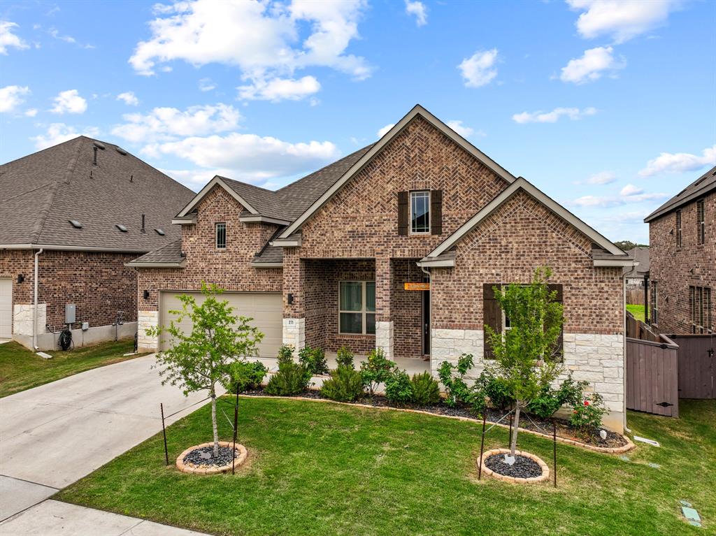 This single-story home is located in the Anthem community of Kyle, Texas and features 3 bedrooms and 2.5 bathrooms, offering a lifestyle centered around Hill Country beauty and resort-style recreation. Anthem is a master-planned neighborhood positioned along FM 150 on the west side of Kyle, providing a balanced layout that connects residents to the outdoors through an interconnected system of greenbelts and parks. This 3-bedroom, 2.5-bathroom home features an open-concept living room that flows directly into the kitchen, anchored by a large curved granite island that serves as the primary gathering spot. High vaulted ceilings and vinyl wood-plank flooring run through the main living areas, while oversized windows along the back wall offer clear views of the private backyard. The primary suite is situated at the rear of the home for added privacy, complete with an ensuite bathroom featuring dual vanities, a deep soaking tub, and a walk-in glass shower.Two additional bedrooms share a bathroom and a bonus space that is perfect for an office is located off of the entry. Outback you will enjoy an oversized covered patio to enjoy the warm summer breeze and sunsets on. The Anthem neighborhood is designed for those who value community engagement, with amenities like the 4-acre Central Park, a pool, pickleball courts, and a lifestyle director who coordinates social events. Located just 25 miles from Downtown Austin and 26 miles from Austin-Bergstrom International Airport (ABIA), this property offers proximity to major employment hubs while remaining just minutes from local favorites like the Texas Pie Company in Downtown Kyle and the shopping at Kyle Crossing off I-35. With 30% of the Anthem community bordered by permanently protected open space, this home provides a quiet retreat near the gateway to the Texas Hill Country.