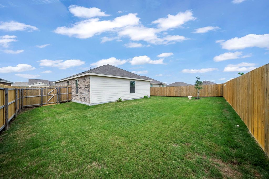 Located in the highly sought-after Sendera Ranch; a master plan community where modern living is attainable and affordable. This home offers 1500 sq. ft. of living space in an open concept lay out, with the kitchen positioned strategically behind beautiful granite countertops ensuring full engagement with both living and dining areas. Appliances are approximately 2 years old, and structural warranty is still available to future homeowners to benefit and enjoy while providing peace of mind. All bedrooms are sun kissed with an abundance of natural sunlight and are carpeted with spacious closets for comfort and convenience. Primary bedroom is placed in the back of the home and has a large walk-in closet as well as a walk-in shower for maximum space and relaxation. Enjoy an oversized backyard on a premium lot! This home has a huge backyard which is an open canvass, offering options on outdoor living, whether you are a garden enthusiast, or plan on having playground set up or both! Don't miss out on this fabulous home and schedule your tour today!