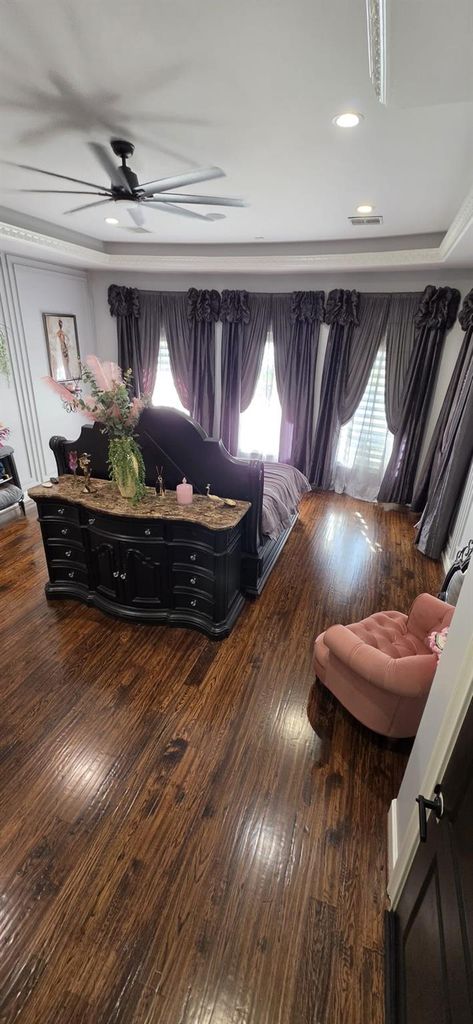 Waterfront living on 2.54 gated acres in the desirable Commons Waterway. This Mediterranean-style custom home offers 5 bedrooms, 5 full baths, 4 half baths, soaring ceilings, and wood flooring throughout the main living areas. The first floor features a spacious primary suite with a spa-like bath and oversized closets, a media room, a wine room, formal dining, and a gourmet kitchen that opens to the main living space. Upstairs includes three additional bedrooms, a large game room, and a 23x27 home gym with balcony views. Enjoy resort-style outdoor living with a covered pavilion, fireplace, summer kitchen, pool with spa, and private boat dock with electrical hookup. Additional highlights include gated entry, 3-car garage, whole-home generator, and convenient access to shopping, dining, and major freeways.