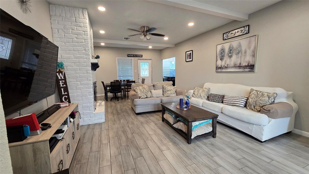 Move-in ready and full of updates, this home stands out with stylish finishes and valuable improvements throughout. The remodeled kitchen and bathrooms feature classic Shaker-style cabinetry, striking black granite countertops, and stainless steel appliances. Tile flooring offers easy upkeep, while fresh interior and exterior paint, recessed lighting, updated fixtures, blinds, and ceiling fans create a bright and inviting feel. Modern touches like décor-style outlets and switches, GFCI outlets, and an updated breaker panel add everyday convenience. Outside, enjoy added functionality with French drain, gutters, upgraded landscaping, and fencing. Previously reported updates include roof in 2019 and HVAC in 2018.
