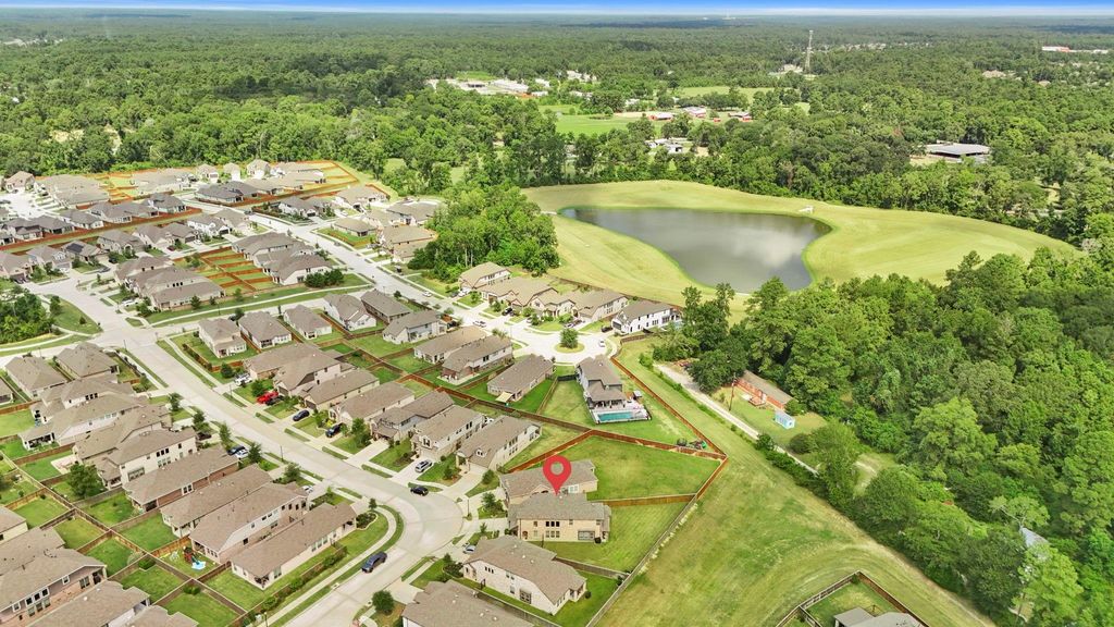 DTUNNING HIGHLAND EVERLEIGH PLAN ON ONE OF THE BEST LOTS IN NORTHGROVE! ! This home features a dramatic 2-story family room that opens seamlessly to the impressive island kitchen, complete with 42” cabinets, quartz countertops, stainless steel appliances, and extensive LVP flooring throughout the downstairs. The primary suite is on the main floor with an executive bath, separate tub and shower, and a large walk-in closet. Flex room downstairs offers the perfect space for a nursery or private study. Upstairs, you’ll find a spacious game room and two generously sized secondary bedrooms. Enjoy walking to nearby parks, trails, and the amazing community center with a pool—all just minutes from The Woodlands. This one is a must-see!