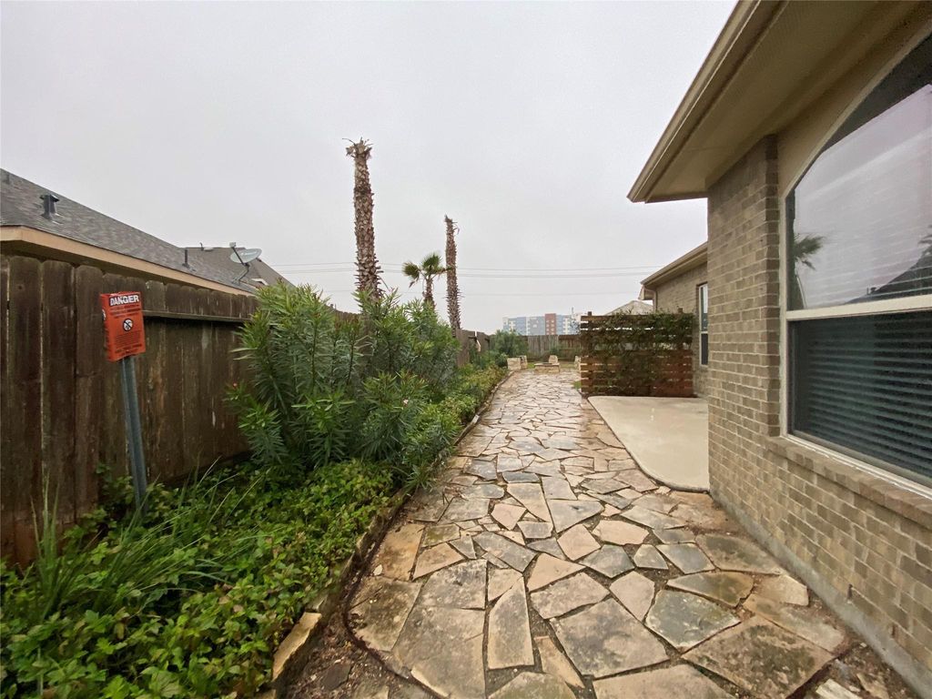 Beautiful 4 bdrm, 2 bath home. Located on a Big Cul-De-Sac Lot, it offer a custom brick & stone exterior with covered front porch & covered patio in the backyard. Plus sitting area around the Fire-Pit and a garden in the side yard. The Community Pool & Park, Shopping & Restaurants are nearby. Inside offers an elegant entry foyer next to the Dining Room. The Large kitchen & breakfast area has beautiful cabinets with granite counters & tile backsplash. The Breakfast Bar overlooks the Living room with fireplace & view of backyard. The primary bathroom suite offers big bathroom with soaker tub, separate shower & walk-in closet. 3 guest bedroom & bath are on the opposite. Recent Laminate floors & carpet has been replaced. Ready for move in! REPLACED NEW ROOF, NEW WINDOWS AND NEW OWEN IN 2025. MUST SEE!
