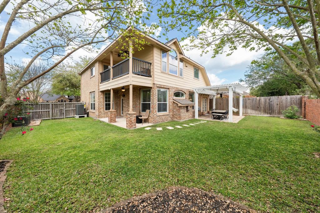 Welcome home to 5223 Cottonwood Creek located in the Magnolia Creek community in League City. This two story, three bedroom, two and a half bathroom home with an office offers a wonderful layout with multiple living spaces, formal dining, and a spacious primary suite with a private balcony overlooking the golf course greenspace. Recent updates include a renovated primary bathroom (2023), updated guest bath (2024), new flooring in the upstairs hallway and primary bedroom, a new roof (2024), new Trane HVAC system (2026), new generator port (2024), and a new water heater (2023). The kitchen features granite countertops, gas cooking with double ovens, and KitchenAid appliances. The backyard offers two patio areas, no back neighbors, and space to relax or entertain. Magnolia Creek residents enjoy access to pools, parks, playgrounds, and a fitness center, all within a well established golf course community. VA loan may be assumable.