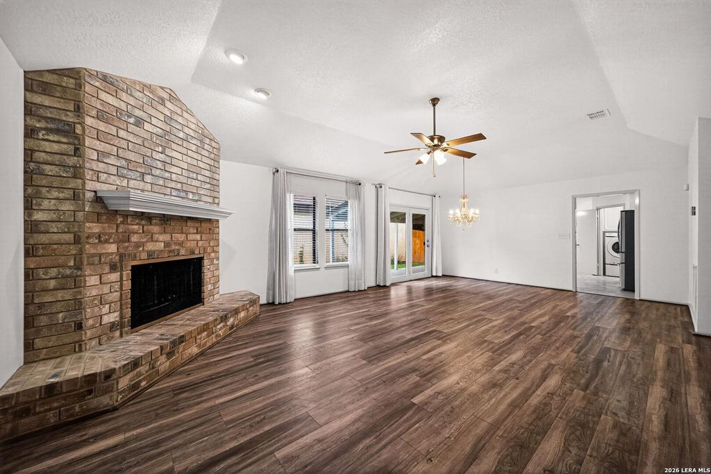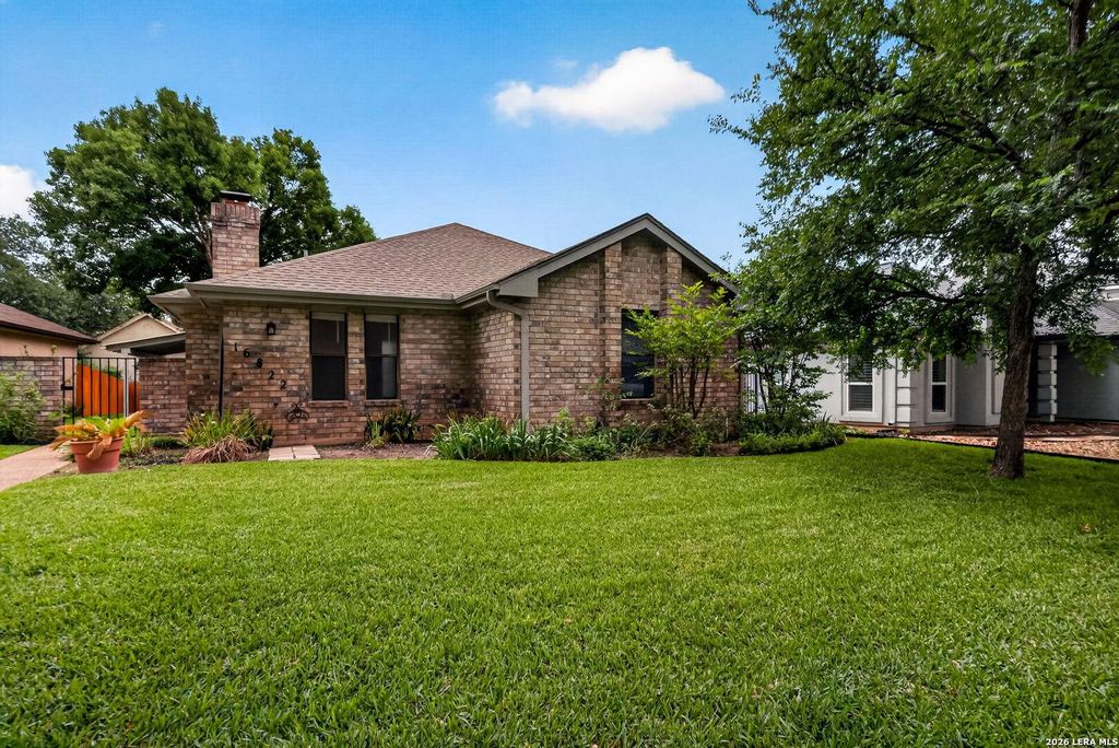 Nicely maintained Garden Home in centrally located Blanco Woods. This 2 bedroom, 2 bath home boasts vaulted ceilings in the large living/dining area with fireplace, updated kitcen with granite counters and large master bedroom with 3 separate closets! Enjoy your morning coffee on the covered patio. Refrigerator and Washer/Dryer convey to new owner. This home is move-in ready and waiting for new owners. A must to see in a very popular area.