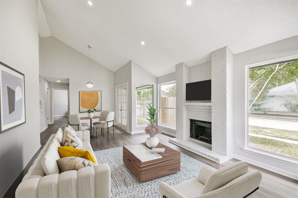 Rare find, move-in ready with beautiful colors and selections. 1 story, on private corner lot in excellent location with easy access to the roadways, shopping and dining. Special features and improvements include: new roof 8/2025,new waterproof, luxury vinyl floors 2025,new water heater 9/2025, new a/c & heat 2024, electrical improvements 9/2025, fresh paint inside and out, fully remodeled kitchens and bathrooms, wood burning fireplace, lots of storage and closets, updated lighting, covered front porch and covered back patio. Ideal flowing floorplan that offers a perfect flow and natural light. Large primary with on suite bath is laid out and finished beautifully. See floorplan and walk-through tour of home. What a location and what a find!
