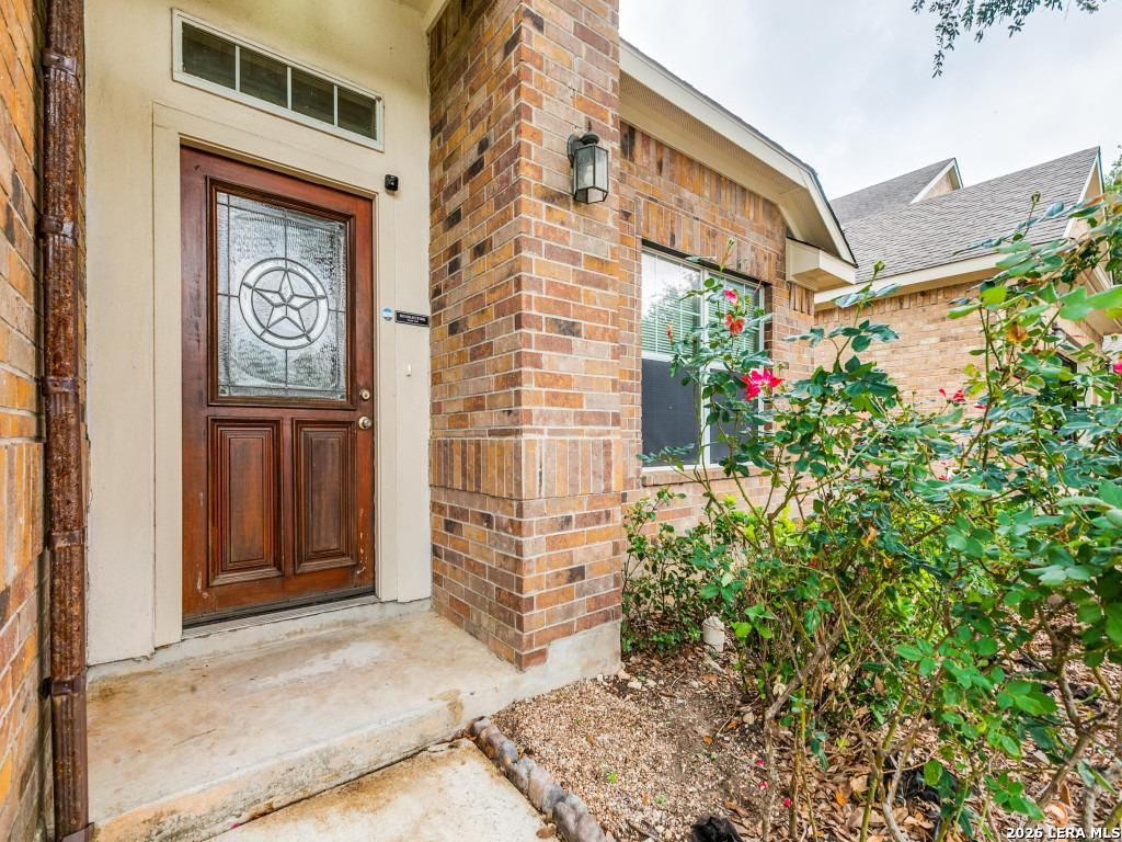 Wonderful opportunity to own a beautiful one-story brick home in a small, private gated community at an amazing price. The open living area features a gas-log fireplace and flows seamlessly for everyday living. Kitchen features stainless appliances with 5-burner gas cooking, stainless refrigerator. The private primary suite is located at the back of the home and offers dual closets, dual vanities, a garden tub and separate shower. A versatile flex room with French doors opens to the back patio, providing ideal space for a home office or additional living area. Enjoy the oversized covered patio with a newly installed ceiling fan. Additional features include an oversized garage with shelving and garage door opener and gutters. Foundation work completed in January 2026; tile replaced throughout, and interior has been freshly painted. Add your personal touches and make this home your own!