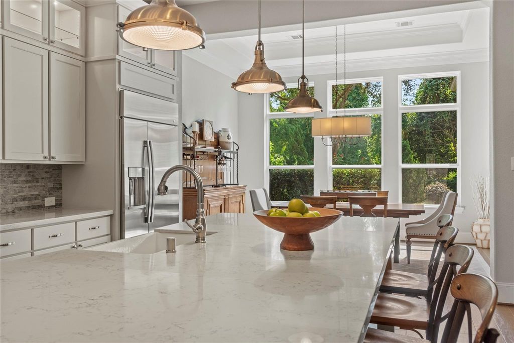 Experience luxury living in this stunning 4-bedroom, 4.5-bath home nestled in the highly sought-after Sienna community. This elegant residence features a private first-floor guest suite, a chef’s kitchen with stainless steel appliances, double ovens, 6-burner gas cooktop, oversized island, and walk-in pantry. The primary suite offers a spa-inspired bath with a freestanding soaking tub, triple-head shower, and dual vanities. Enjoy custom barn doors, plantation shutters, and soft-close cabinetry throughout. The upstairs game room with wet bar is perfect for entertaining, while the covered patio with outdoor kitchen overlooks a serene green space with no rear neighbors. Additional highlights include a 3-car garage, Leaf Guard gutter system, EV ready, and a flex/exercise room off the primary closet. Conveniently located near Sienna’s resort-style amenities, and access to Highway 6 and Fort Bend Tollway.